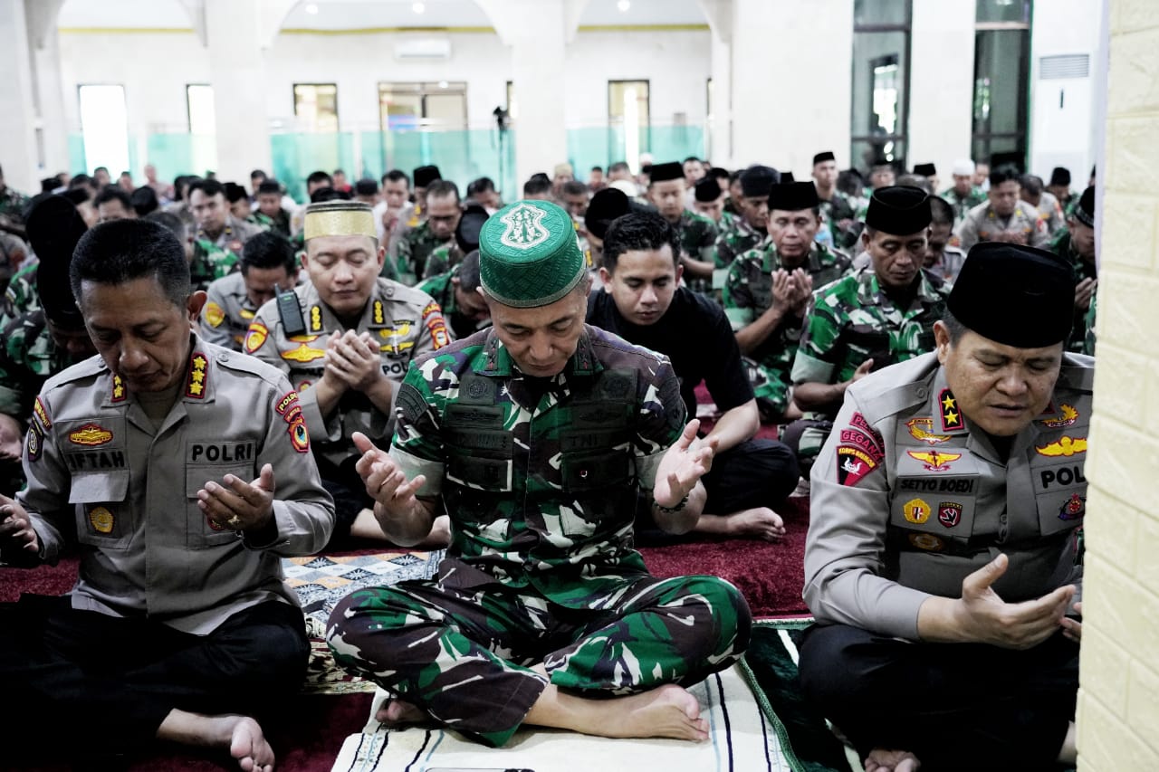 Pimpinan TNI, baik Panglima TNI maupun pimpinan Angkatan Darat bapak Kasad, sudah memberikan instruksi kepada saya, kepada seluruh Pangkotama TNI untuk merajut kebersamaan, sinergi dan soliditas dengan Polri, khususnya dengan komponen bangsa yang ada di seluruh wilayah”, Ungkap Mayjen Totok di depan para jamaah.