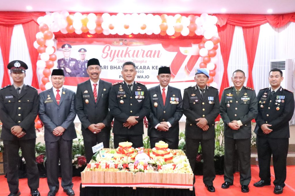 WAJO – Usai menggelar upacara, Polres Wajo melanjutkan dengan nelaksanakan Syukuran Hari Bhayangkara Ke-77 Tahun 2023 bertempat di Aula Sandi Mapolres Wajo. Sabtu ( 1 Juli 2023) sekita pukul 09.50 Wita