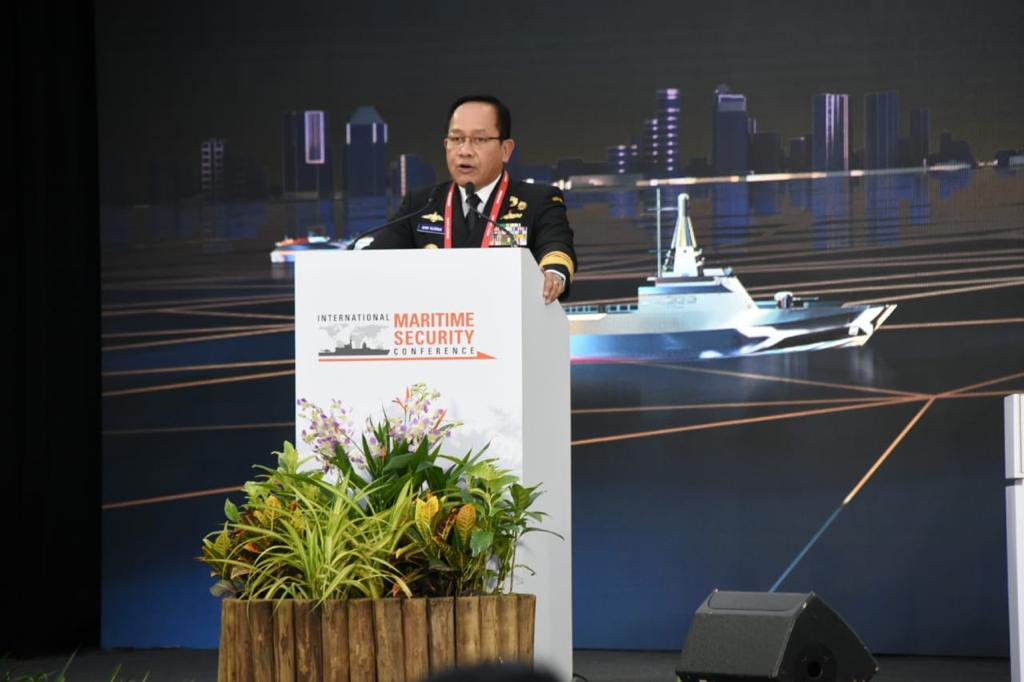 Singapura — Kepala Bakamla RI Laksdya TNI Dr. Aan Kurnia jadi pembicara Special Seasion dalam Internasional Maritime Security Conference (IMSC) di Changi Exhibition Center, Singapura, Kamis (4/5/2023). IMSC merupakan Konferensi keamanan maritime internasional tingkat tinggi yang juga merupakan bagian dari IMDEX 2023 yang berlangsung 3-5 Mei. Pada acara tersebut, Kepala Bakamla RI mendapatkan kesempatan untuk memberikan perspektif mengenai pertahanan dan keamanan laut.