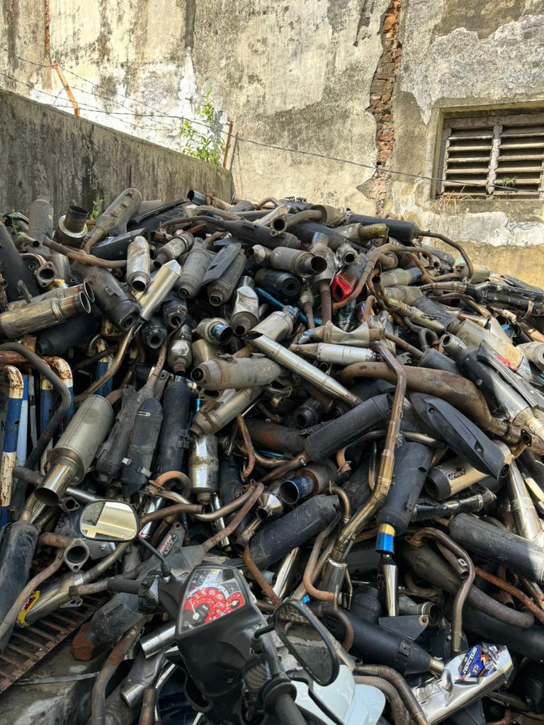 Knalpot brong hasil sitaan Satlantas Polrestabes makassar akan dibuat bahan pembangunan tugu.