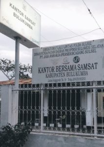 Kantor Satuan Administrasi Satu Atap kab bulukumba (SAMSAT), terdapat tiga Institusi yang berkantor yaitu Polri, UPT Dipenda wilayah bulukumba dan Jasaraharja.