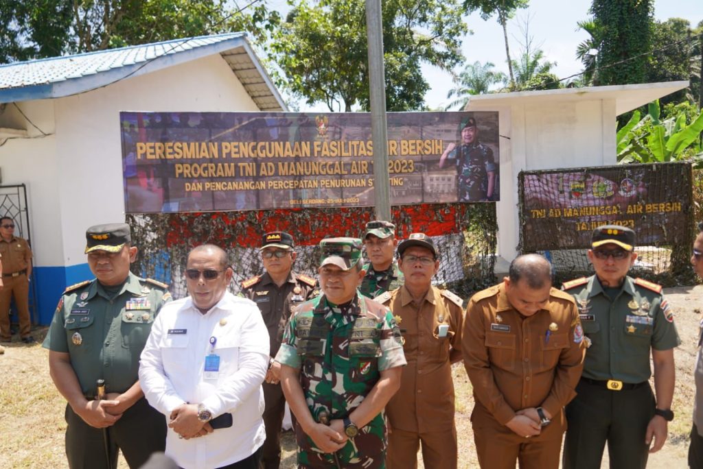 Bangun Purba – Pangdam I/BB, Mayjen TNI A Daniel Chardin, SE, MSi, meresmikan penggunaan fasilitas air bersih program TNI AD Manunggal Air TA 2023 dan Percepatan Penurunan Stunting di wilayah Kodim 0204/Deliserdang, tepatnya di Desa Rumah Deleng, Kecamatan Bangun Purba, Kabupaten Deliserdang, Selasa (25/7/2023).