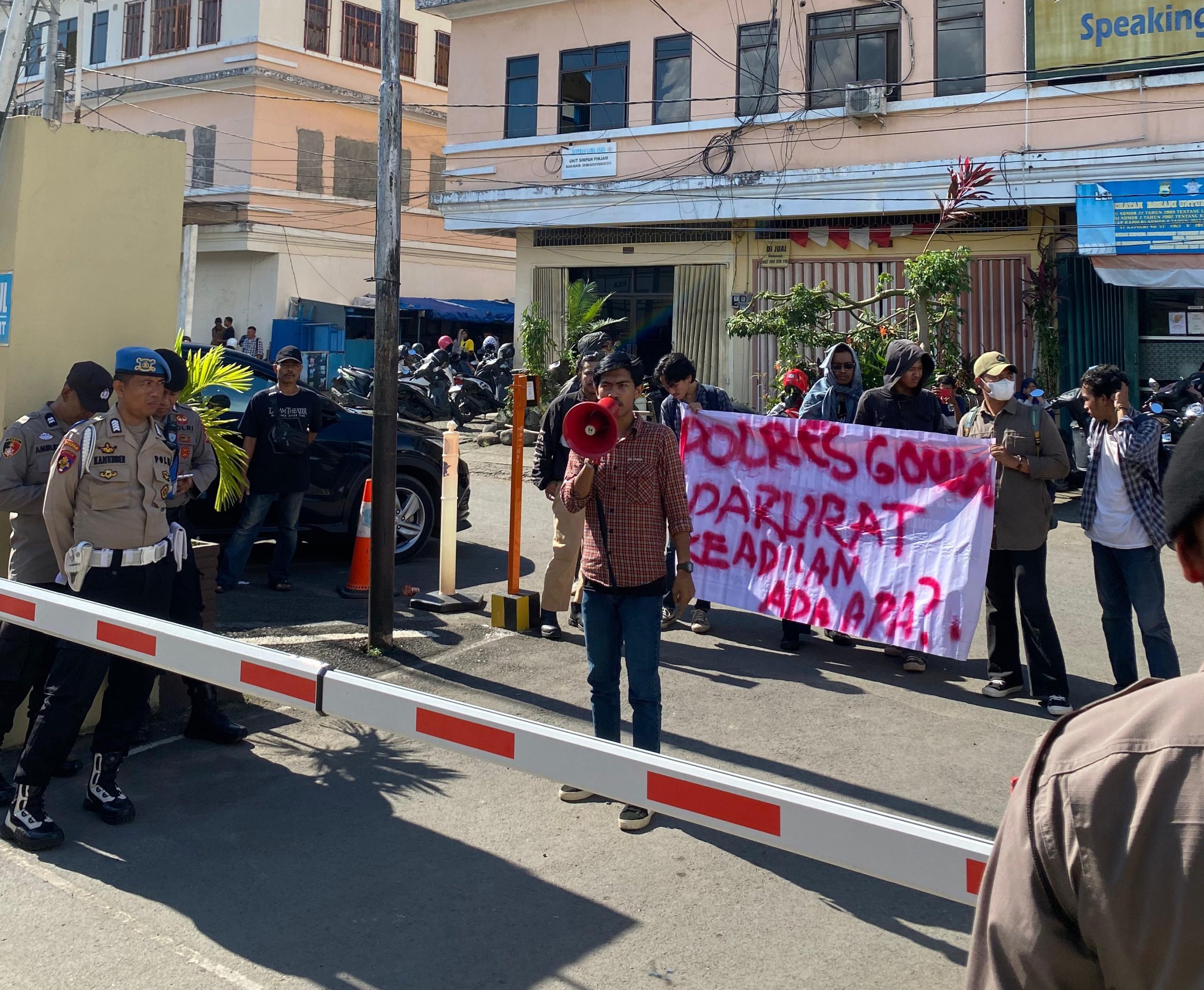 Respon dari kelompok massa yang mengatasnamakan APK-Indonesia tersebut mendatangi Polres Gowa sekitar pukul 14.00 WITA dengan membawa pengeras suara (megaphone) dan membentangkan spanduk yang bertuliskan “Polres Gowa Darurat Keadilan. Ada apa?”. Puluhan massa tersebut bergantian berorasi mendesak pihak Polres Gowa untuk segera menemui dan mendengar tuntutan aksi tersebut.