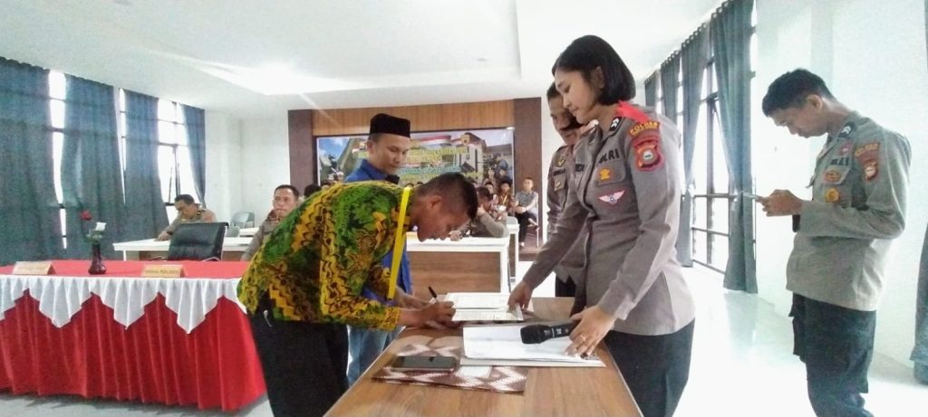 Kepolisian Resor Toraja Utara Polda Sulawesi Selatan menggelar Penandatanganan Pakta Integritas Rekrutmen Penerimaan Anggota Polri Gelombang II T.A. 2023 secara virtual di Aula Mapolres Toraja Utara yang dipimpin Wakapolres Toraja Utara Kompol Marthen Buttu, Senin (17/04/2023).