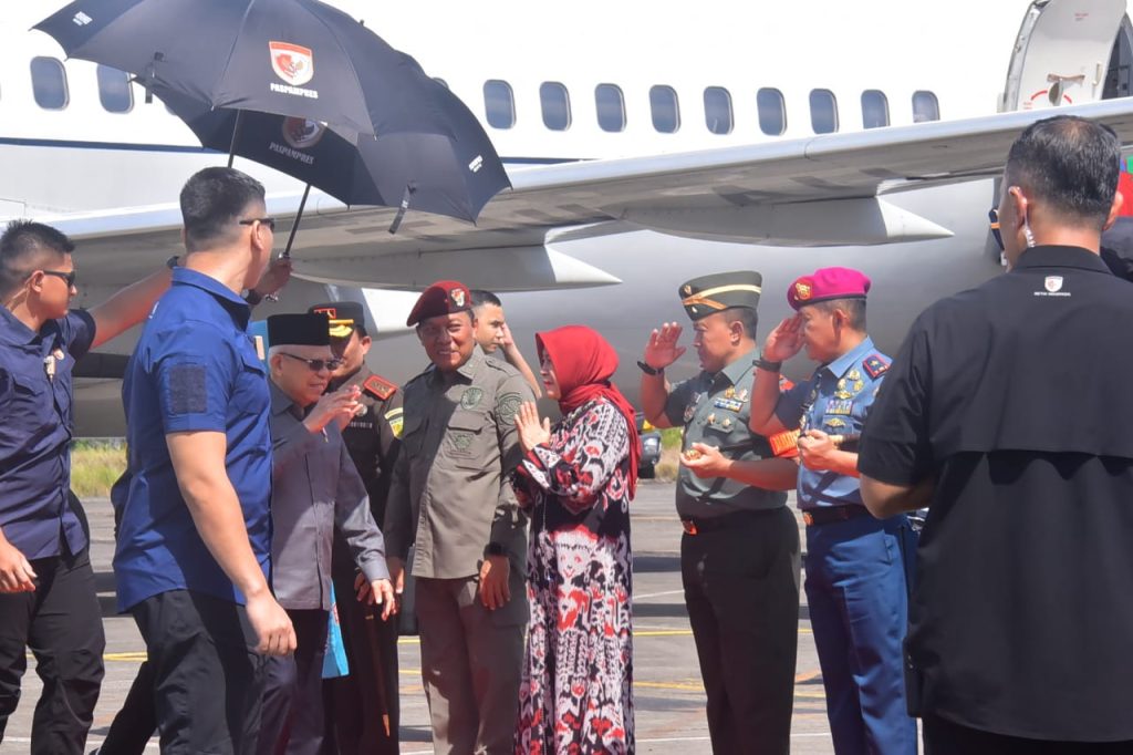 Makassar- Wakil Presiden (Wapres) RI Prof. Dr. (H.C.) K.H. Ma’ruf Amin dan Hj. Wury Ma’ruf Amin transit di Makassar, Komandan Lantamal VI (Danlantamal VI) Makassar Brigadir Jenderal TNI (Mar) Amir Kasman S.E M.M turut hadir melaksanakan prosesi penyambutan bertempat di Lanud Sultan Hasanuddin , Rabu (11/07/2023).