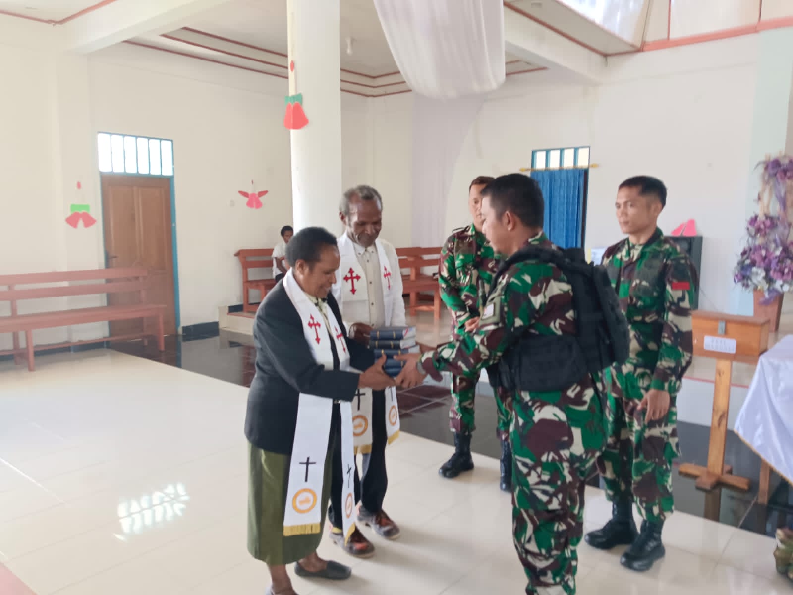 “Saya mewakili seluruh para jemaat mengucapkan terima kasih atas bantuan saudara-saudara tentara dari Pos Apalapsili yang saat ini bertugas. Semoga Tuhan memberikan balasan yang baik kepada seluruh anggota Satgas Yonif Raider 200 BN yang sedang melaksanakan tugas pengamanan di Tanah Papua ini”, ujarnya.